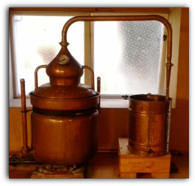 We use a traditional copper alembic still (pictured below).The distillate is then cut to bring the alcohol content down to the desired percentage using carbon filtered water.